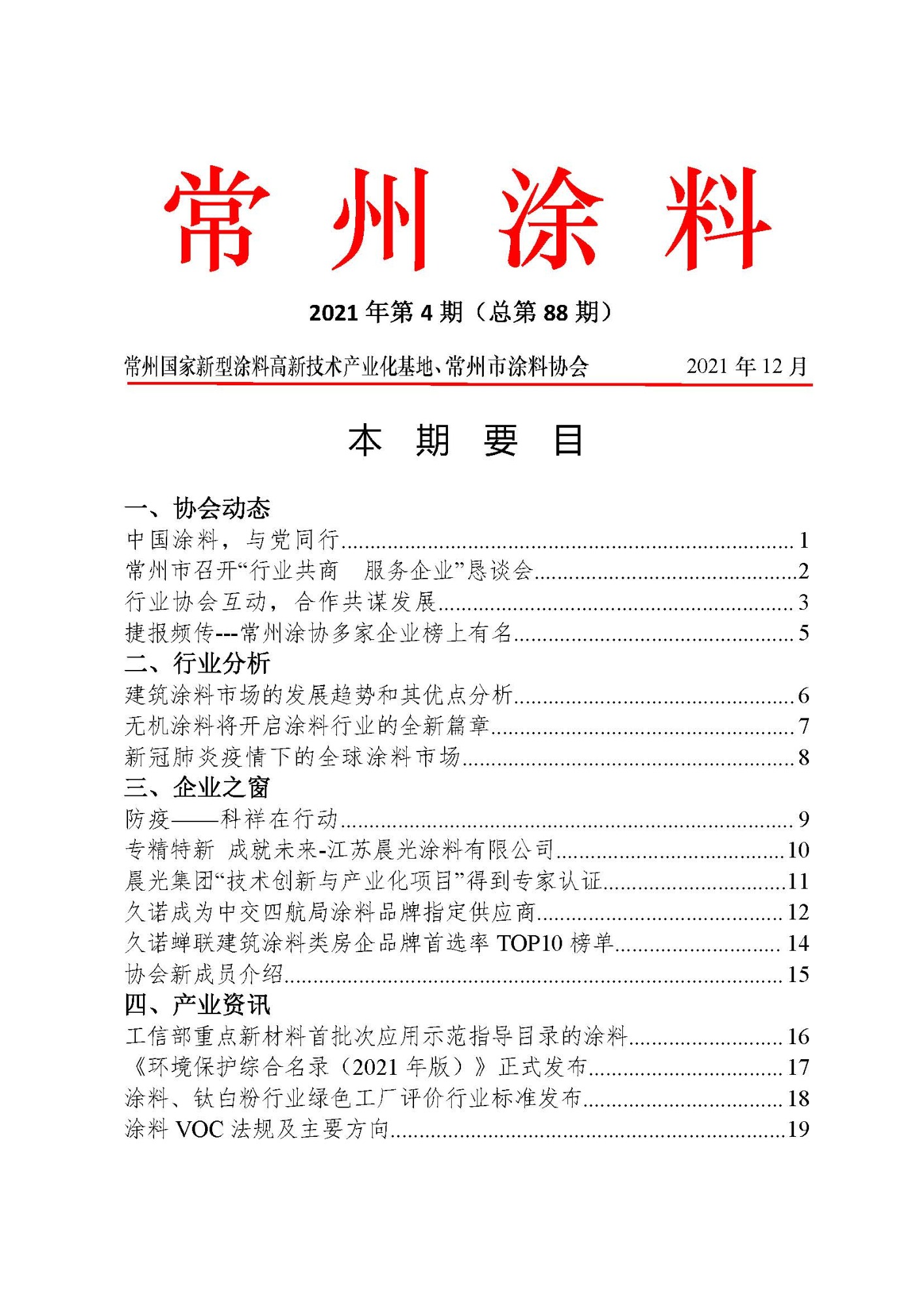 常州涂料簡報2021年第4期(總第88期)